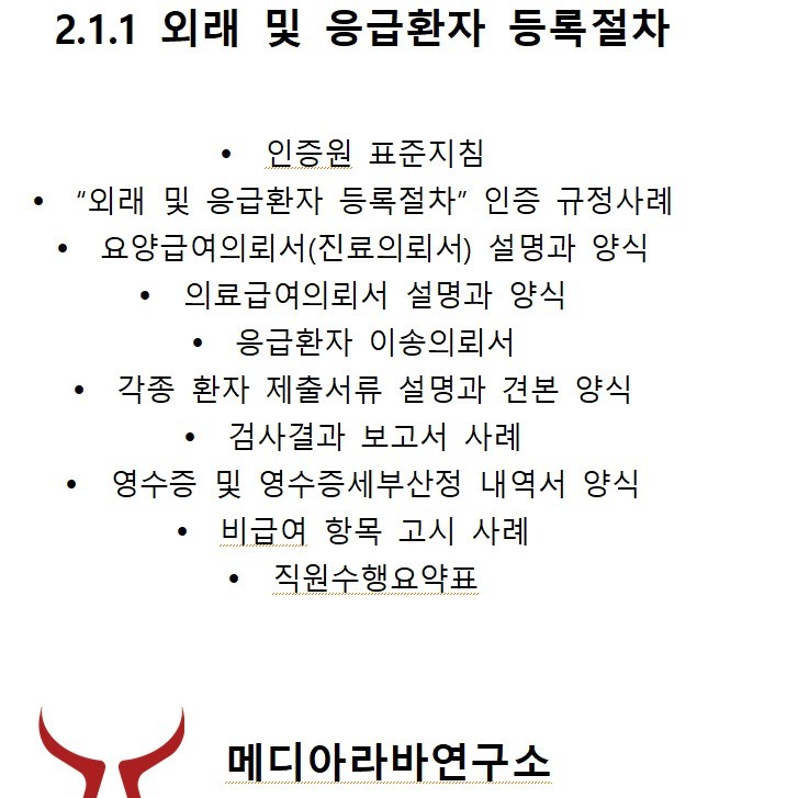 “외래 및 응급환자 등록절차” 인증 규정사례