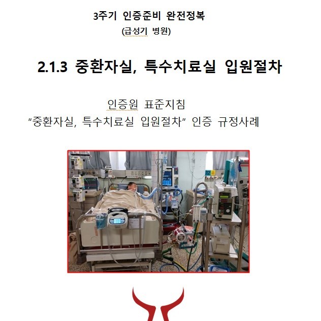 “중환자실, 특수치료실 입원절차” 인증 규정사례